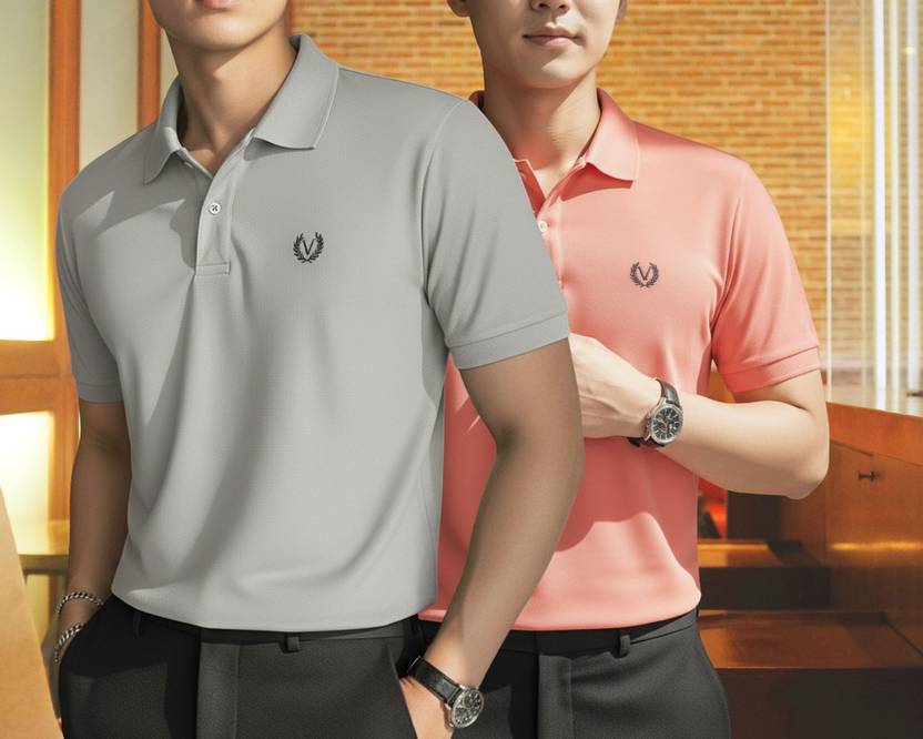 Pack of 2 Men Solid Polo Neck Cotton Blend Multicolor T-Shirt
