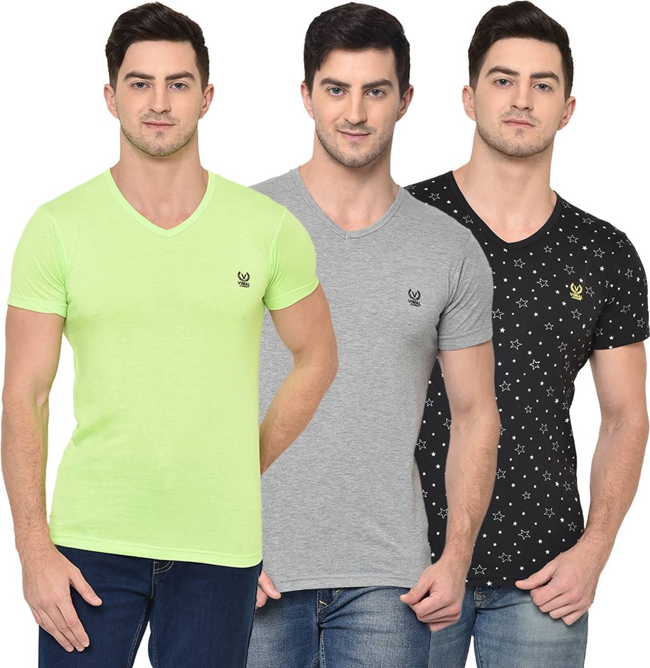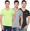 MACK JONNEY Solid Men V Neck Multicolor T-Shirt