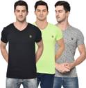 MACK JONNEY Solid Men V Neck Multicolor T-Shirt
