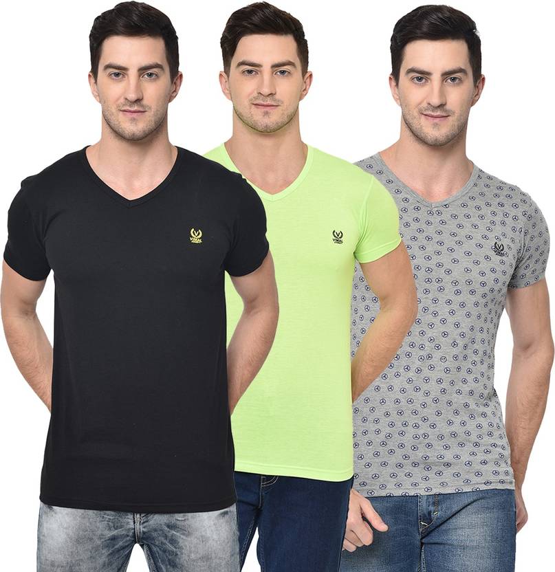 MACK JONNEY Solid Men V Neck Multicolor T-Shirt