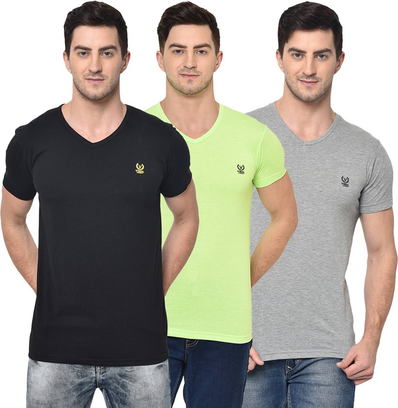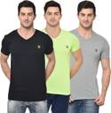MACK JONNEY Pack of 3 Men Solid V Neck Cotton Blend Multicolor T-Shirt