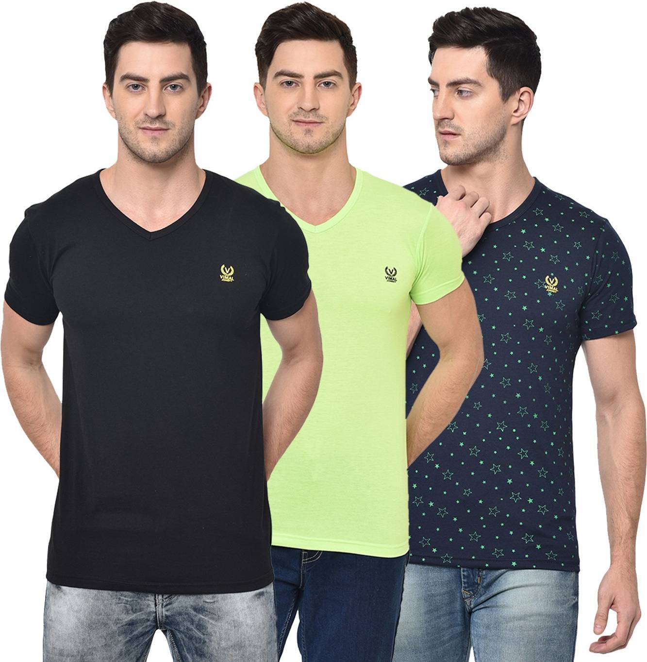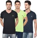 MACK JONNEY Solid Men V Neck Multicolor T-Shirt