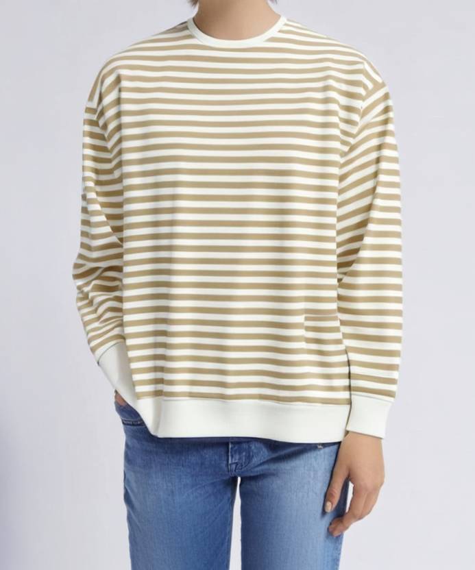 MACK JONNEY Men Striped Round Neck Cotton Blend Beige T-Shirt