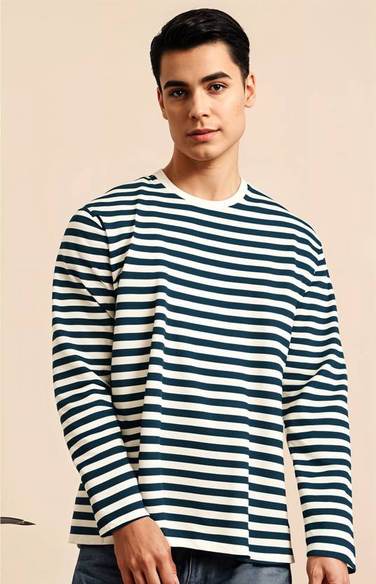MACK JONNEY Striped Men Round Neck Blue T-Shirt