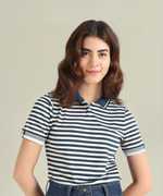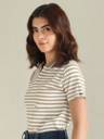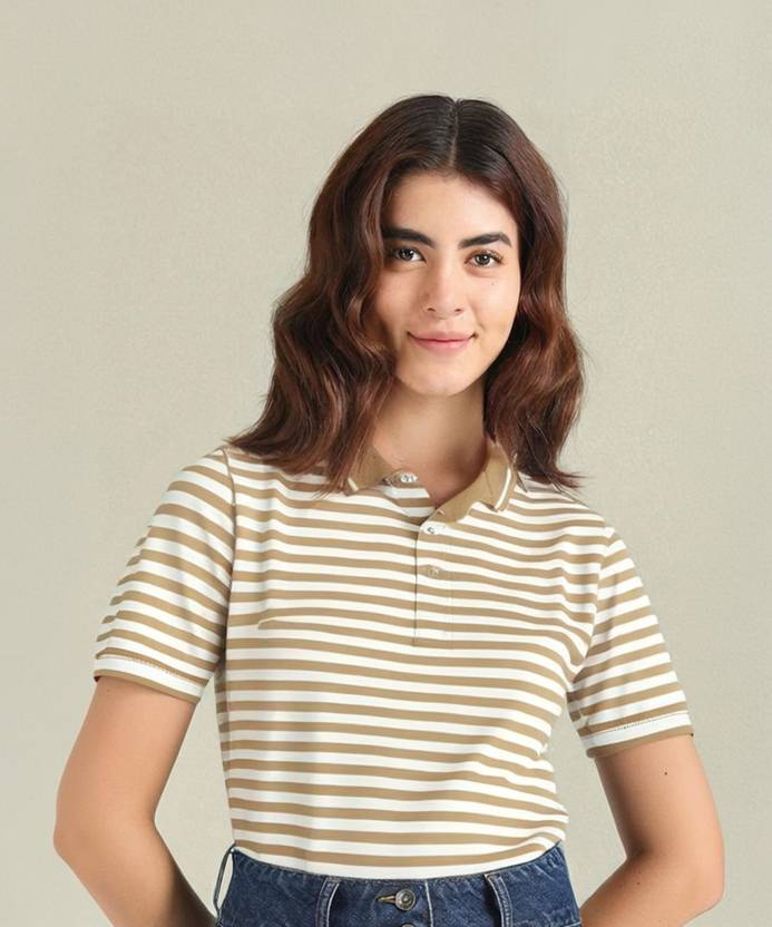 MACK JONNEY Striped Women Polo Neck Beige T-Shirt