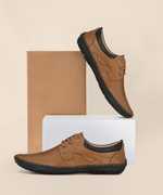 A pair of Tan Formal Shoes,has regular styling. Lace Up detail for firm grip. PU upper. Stiched Flexible sole for extended durability and comfort.Cushioned Footbed