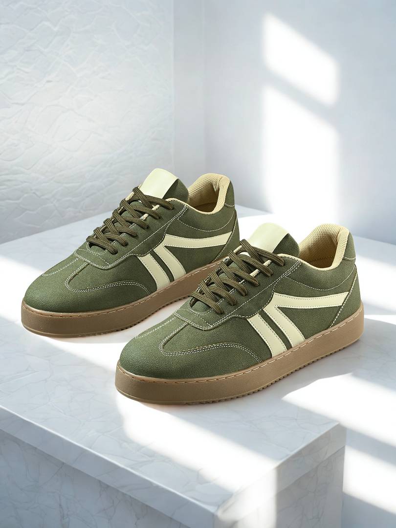 A pair of grey solid round toe casual sneakers with regular styling has a lace-up closure,PU upper,Cushioned footbed,Textured and patterned TPR outsole