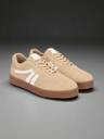 A pair of grey solid round toe casual sneakers with regular styling has a lace-up closure,PU upper,Cushioned footbed,Textured and patterned TPR outsole