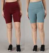 Cosvos Solid Women Maroon, Blue Tights