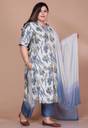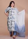 Madam PLUS Muslin Foil Print 3 Pc Suit Set with Hand work for plus size women's Printed Anarkali Kurta, Bottom & Dupatta Set