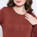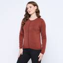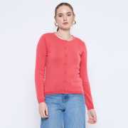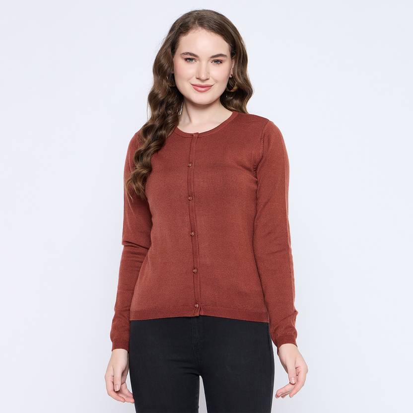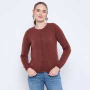This cardigan offers a luxurious feel against the skin while ensuring durability for everyday wear. The rich rust red hue adds a warm and inviting touch, making it an ideal choice for both casual outings and more formal occasions. The classic crew neck design provides a timeless silhouette. The button-down front allows for versatile styling options, enabling you to wear it open over a blouse or buttoned up for a polished look. The relaxed fit ensures ease of movement, making it suitable for a variety of body types. Pair it with tailored trousers for a sophisticated office ensemble or with your favorite jeans for a laid-back weekend look.