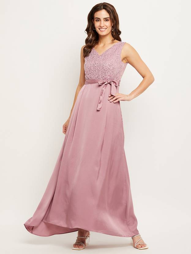 MADAME Women A-line Pink Maxi/Full Length Dress