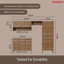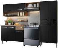 The Compact Kitchen Cabinet, measuring 229 cm, is the Rustic Emilly Pop Madesa 02 model, designed to be both functional and stylish for everyday use. This American-style kitchen is compact yet offers a well-distributed internal space that complements both modern and classic environments. It features a high-durability polyester finish, 350 mm metal runners, 26 mm metal hinges, and adjustable PVC legs for easy cleaning. The kitchen cabinet set includes one pantry with 4 doors, a base cabinet with 3 doors, 1 drawer, and a wooden countertop, as well as a wall cabinet with 2 doors and 2 niches. The dimensions are 229 cm in width, 186 cm in height, 44 cm in depth for the base cabinet, and 27 cm in depth for the wall cabinet and pantry. The height can be adjusted up to 188 cm with the adjustable PVC legs. The Emily Pop Madesa 02 model combines practicality with rustic charm, making it an ideal choice for those seeking a space-saving solution without sacrificing style. Note: The product is delivered disassembled and will be assembled by the service partner. It includes an installation manual and all necessary hardware for assembly.