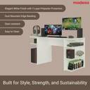 To enhance your gaming experience, there's nothing better than investing in a gaming desk that offers great comfort, plenty of space, and a modern design. Whether you game on a computer or a console, this desk has space to organize everything. The reinforced tabletop has room for your keyboard, monitor, mouse, speakers, and any other accessories you prefer. The lower section includes multiple shelves, perfect for storing the CPU, games, controllers, and console. Moreover, this versatile desk can also be used as a writing desk or workstation for studying or working. The white finish is done with eco-friendly Polyester Paint and includes 7 layers of protection.Total dimensions: 75 cm in height, 136 cm in width, and 60 cm in depth.Included items: One (1) gaming desk. Note: The product is delivered disassembled and will be assembled by the service partner. It includes an installation manual and all necessary hardware for assembly.