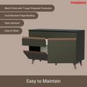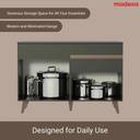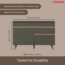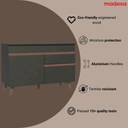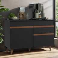 The Reims Sink Cabinet from Madesa is developed with high-quality materials, such as built-in aluminum handles and durable metal hinges. With a modern design, it features two doors and one drawer. The internal layout is perfect for storing pots, utensils, dishes, cutlery, and dish towels, keeping everything organized and making the best use of space. A standout feature is the solid wood feet with a Rustic wood finish, adding beauty and sturdiness to the furniture. Additionally, it includes an MDP top that can be removed to accommodate a sink measuring 120 cm in width by 52 cm in depth. The black finish is achieved with Polyester Paint which is free from vapors that enter the atmosphere, offering protection against water, alcohol, and heat effects. (Images are for illustration purposes only. Decoration items are not included.) Included items: One (1) sink cabinet measuring 83 cm in height x 120 cm in width x 52 cm in depth, with one (1) conventional door, one (1) flip-down door, one (1) drawer, and a top.Note: The product is delivered disassembled and will be assembled by the service partner. It includes an installation manual and all necessary hardware for assembly.