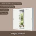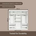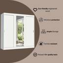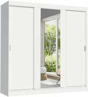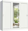 The Reno Couple's Wardrobe from Madesa strikes the ideal balance between a modern design, excellent internal organisation, and high-quality materials. It features three sliding doors equipped with aluminium tracks for a smooth, effortless glide, efficiently conserving bedroom space without impeding access. Notably, two of these doors incorporate mirrors, enhancing the room's openness and proving to be extremely practical for daily use. The wardrobe also offers four spacious drawers with metallic slides, two rods for long clothing, and one for shorter items, ensuring there's ample space for everything a couple might need, including luggage, shoes, pillows, and blankets. The white finish is achieved through a high-resistance Polyester Paint, an eco-friendly approach that ensures the product's longevity. The wardrobe's dimensions are 205 cm in height, 180 cm in width, and 54 cm in depth, designed to meet a wide array of storage needs. While images are provided for illustrative purposes only, the wardrobe includes eight (8) internal niches, four (4) internal drawers, three (3) hanging rods, and three (3) sliding doors, one made of wood and two featuring mirrors and PVC handles, making it a durable, stylish, and functional choice for couples . Note: The product is delivered disassembled and will be assembled by the service partner. It includes an installation manual and all necessary hardware for assembly.