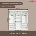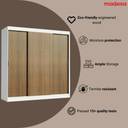 The Reno Couple's Wardrobe from Madesa embodies an ideal fusion of modern design, smart internal layout, and quality materials. It features three sliding doors on aluminum tracks, ensuring smooth operation and optimal use of bedroom space without hindrance upon opening. The central door is mirrored, effectively enlarging the perceived space and offering practical daily use. Inside, the wardrobe is equipped with four spacious drawers, two rods for long clothing, and one for shorter items, making it a comprehensive storage solution for everything a couple might need, from luggage and footwear to pillows and blankets. The interior boasts a clean white finish, while the exterior presents a Rustic wood pattern, all protected with Madesa's eco-friendly, seven-layer Polyester Paint for enhanced durability. The wardrobe's total dimensions are 205 cm in height, 180 cm in width, and 54 cm in depth, tailored to accommodate a broad range of storage needs. Please note that the images are for illustrative purposes only. The wardrobe includes eight (8) internal niches, four (4) internal drawers, three (3) rods, and three (3) sliding doors, two (2) in wood with PVC handles and one (1) mirrored, providing a durable, stylish, and functional addition to any couple's bedroom.Note: The product is delivered disassembled and will be assembled by the service partner. It includes an installation manual and all necessary hardware for assembly.