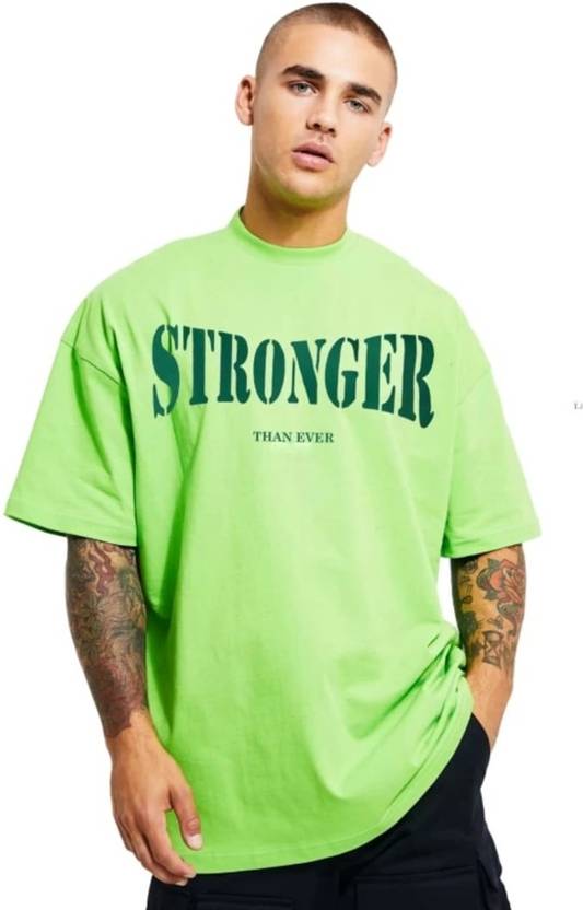 Men Typography Round Neck Pure Cotton Light Green T-Shirt