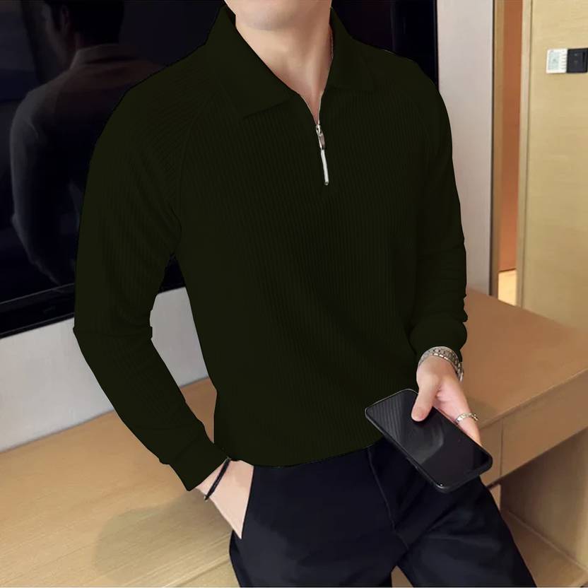 Upgrade your wardrobe with this stylish Men's Solid Polo Neck T-shirt, featuring a unique zip design. Made from a high-quality polyester blend, this t-shirt offers a soft, breathable feel that ensures comfort throughout the day. The ribbed texture adds a modern twist to the classic polo neck style, giving it a sleek and contemporary look.With its full sleeves, this t-shirt is perfect for cooler weather or layering under jackets. The comfort fit design allows for ease of movement, making it ideal for everyday wear, casual outings, or semi-formal occasions. The solid color provides versatility, easily pairing with jeans, chinos, or trousers for a smart yet relaxed appearance.Material: Premium Polyester BlendNeck: Polo Neck with Zip ClosureSleeves: Full SleevesFit: Regular Comfort FitStyle: Solid Color with Ribbed TextureOccasion: Casual, Semi-formal, Everyday WearStay stylish and comfortable with this must-have t-shirt that effortlessly combines classic design with modern comfort.