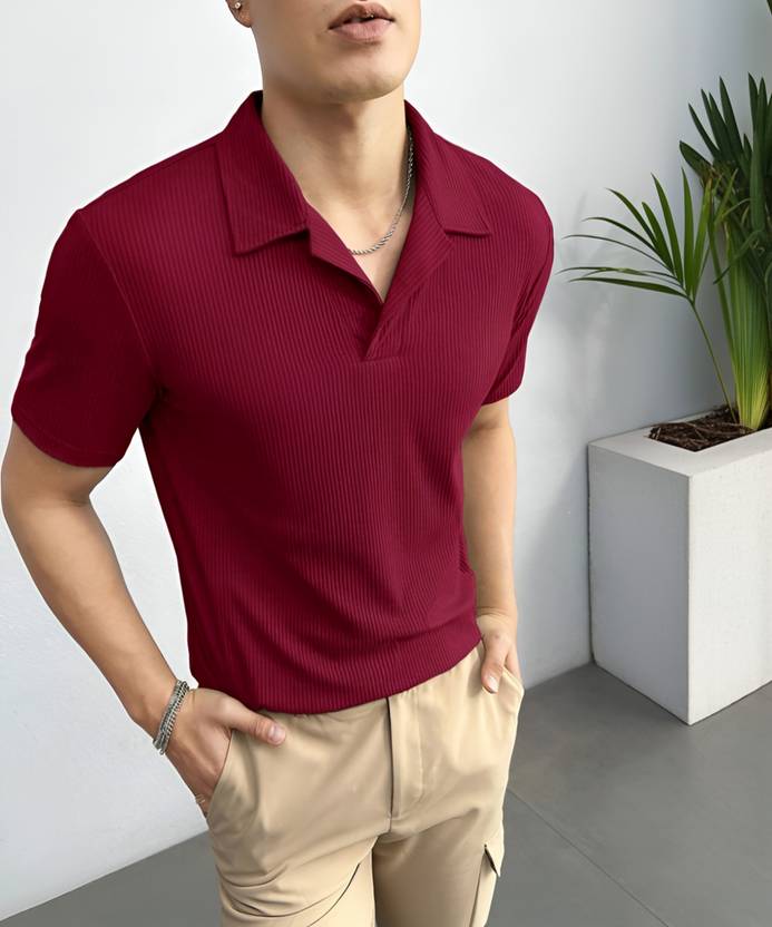 Madfrog Solid Men Polo Neck Maroon T-Shirt