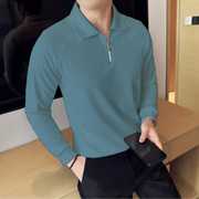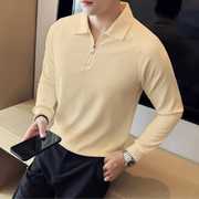 KX Men Rib Zip Polo Full Sleeve Peach