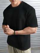 Made from quality polyester fabric, this T-shirt is durable and easy to care for. The polyester material allows the T-shirt to hold its shape well over time, while also offering a lightweight and breathable feel. The waffle knit texture provides softness and breathability, making it comfortable to wear in all seasons. Its quick-drying nature further adds to the practicality of this T-shirt, making it suitable for daily wear.
