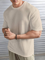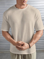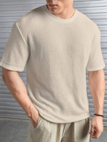 Featuring a timeless look, this men's T-shirt creates a relaxed, oversized fit that blends comfort and contemporary style. The waffle knit pattern adds subtle texture to the fabric, giving it a distinct look that stands out while remaining versatile for various occasions. The pattern adds a refined touch, allowing this T-shirt to look great and feel comfortable in different settings.