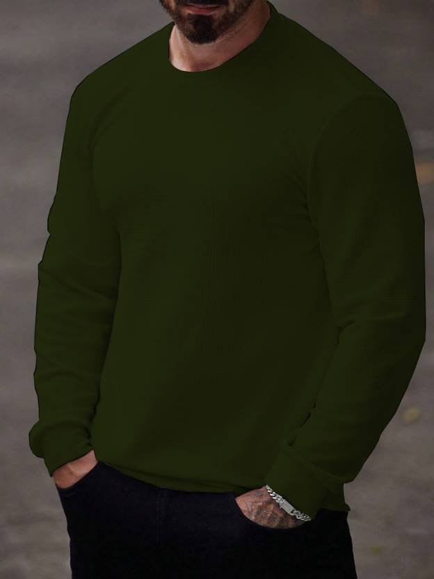 This men's full-sleeve t-shirt is designed for both casual wear and comfort, making it a versatile addition to your wardrobe. Crafted from a polyester blend, it offers a soft, lightweight feel while maintaining durability and stretch for long-lasting wear. The solid color design makes it easy to pair with various outfits, whether you're going for a laid-back look or layering it under jackets.Material: Polyester blend for a smooth texture and enhanced breathability.Neckline: Classic round neck that provides a relaxed, comfortable fit around the necklineSleeves: Full sleeves offer extra coverage and make it suitable for year-round wear.Fit: Regular fit ensures a relaxed, yet flattering silhouette without being too tight or loose.