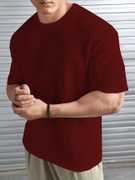 Upgrade your casual wardrobe with this Men's Solid Round Neck Cotton Blend Drop Shoulder T-shirt, designed for ultimate comfort and effortless style. Crafted from a soft, breathable cotton blend fabric, this T-shirt features a classic round neckline and trendy drop shoulder sleeves for a relaxed, oversized fit.Perfect for daily wear, lounging, or casual outings, its solid color and loose comfort fit make it easy to pair with jeans, joggers, or shorts. Stay cool and stylish all day with this wardrobe essential.Premium cotton blend fabric for softness and durability Classic round neck design Trendy drop shoulder sleeves for a relaxed look Loose comfort fit for all-day ease Ideal for casual wear, travel, or weekend outings