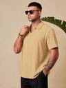 Madfrogย Men Striped Polo Neck Polyester Beige T-Shirt