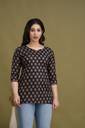 Party Regular Sleeves Printed Women Black, Gold Top