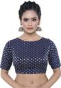 This is a Readymade Stitched Benaras Brocade Saree Blouse available in various colours. This Blouse can be worn with any Contrasting Saree. The Blouse has Boat Neck Design with Elbow Length Sleeves. Pure Cotton Inner Lining is provided for Xtraa Comfort and margins for Xtensions are also provided.