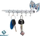 MADHULI Lord Krishna's Flute & Peacock Quills Key Stand Key Holder For Home & Office Brass/ 6 Pin Key Hanging Hooks/Key Chain Hanging/Wall Mounted Key Holder/Wall Hook Stand Brass Key Holder (6 Hooks)