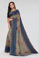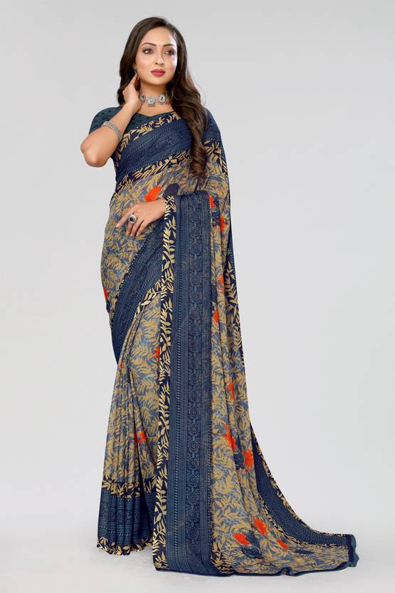 Madhur milan Floral Print Daily Wear Georgette Saree (Grey)