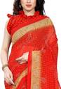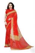 Everyone will admire you when you wear this Geometric Chunri saree. This saree is made from georgette fabric which is highlighted with beautiful chunri print, and perfect touch of geometric print all over the saree. The touch of brown shade in this saree is adding more beauty to it. This saree is paired with unstitched synthetic georgette blouse piece which can be stitched as per your requirement. This saree is comfortable to wear and care. You can wear this saree for casual outings, office, regular social meets and other homely events. Pair it with stylish accessories to complete the look.