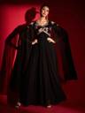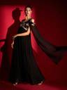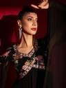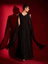 Introducing the Madhuram Regular Anarkali gown, a timeless piece perfect for women seeking elegance and grace. Crafted from luxurious black georgette fabric, this gown is ideal for a range of occasions, from parties to weddings. Featuring a flattering V-neckline and chic 3/4 sleeves, its stitched construction ensures a tailored fit. Adorned with intricate embroidery all over, it exudes sophistication. Packaged as a single long gown, its full length adds to its regal charm, making it a must-have trendsetter for any wardrobe.