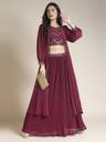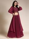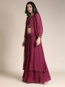 3 piece Set : Our women’s Set features the Skirt And Crop Top With Shrug Party Wear Set And Haldi Ceremony For Women's Latest design. The sleeves are three fourth Puff Sleeves emanating from an Available in multiple sizes And New Style.