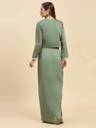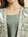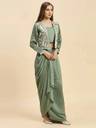 This traditional wear set showcases intricate embroidery, adding artistry and elegance to the outfit. The fine thread work highlights traditional designs, making this ensemble a standout choice for formal events. The carefully made embroidery enhances the overall aesthetic of the outfit, blending classic craftsmanship with contemporary style for a versatile and stylish look.