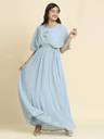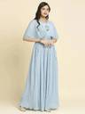 Crafted from georgette fabric, this gown offers a lightweight, breathable, soft texture that ensures comfort even during extended wear. The fabric’s airy nature makes it ideal for wearing in the summer season. Additionally, the flowy quality of georgette provides a smooth drape, allowing for graceful movement while maintaining a flattering silhouette. Whether you're at a party or enjoying a long dinner, the fabric of this gown will keep you feeling comfortable and stylish the entire time.