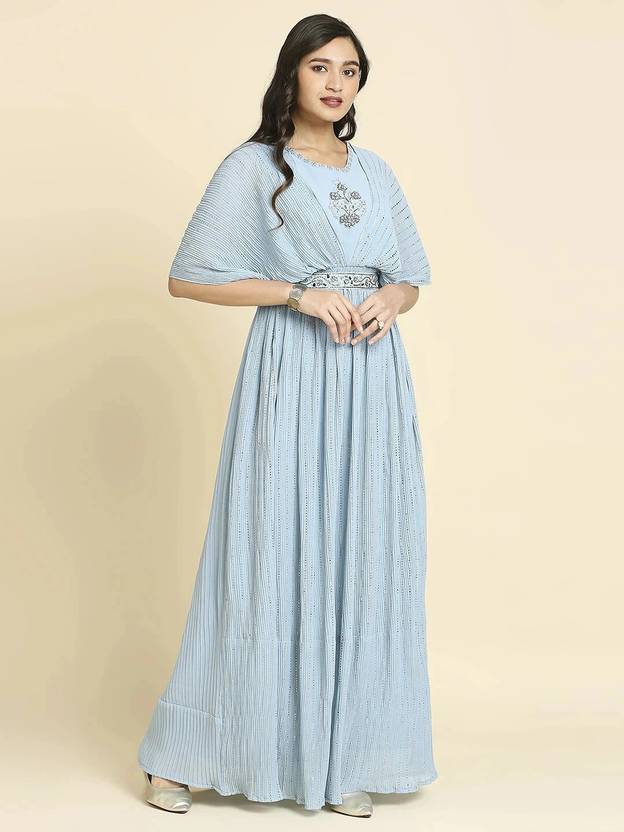 Madhuram Women Embroidered Gown Kurta (Light Blue)