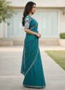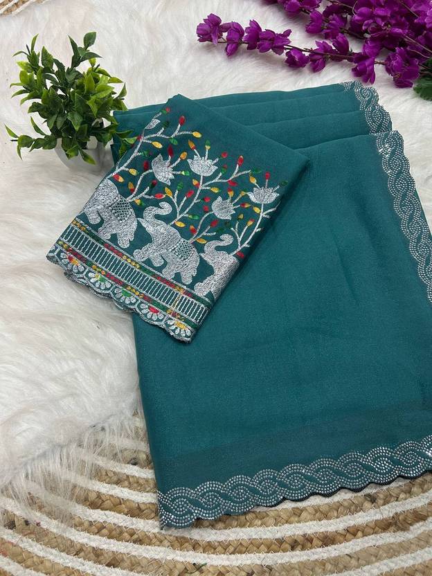 Embroidered, Solid/Plain Bollywood Georgette Saree (Blue)