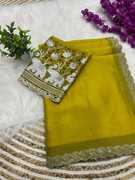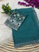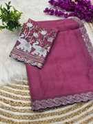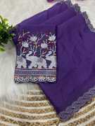 Embroidered, Solid/Plain Bollywood Georgette Saree (Purple)