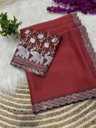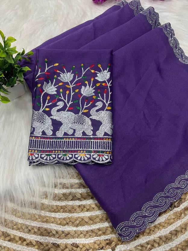 MadhuSaree Embroidered, Solid/Plain Bollywood Georgette Saree (Purple)