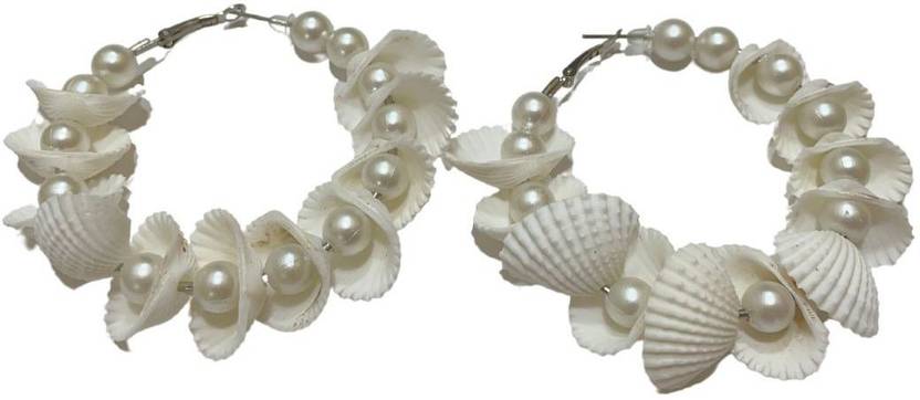 Cute and beach ready shell and pearl earrings/hoops. Try them on with your summer dresses or beach wear. Make heads turn with these latest and trendy earrings. Or gift them to your loved one. Jewelry care - Avoid spraying mist/deo/perfume on your jewelry. Take them off when going for bath/swim. Keep them in an airtight pouch/bag.