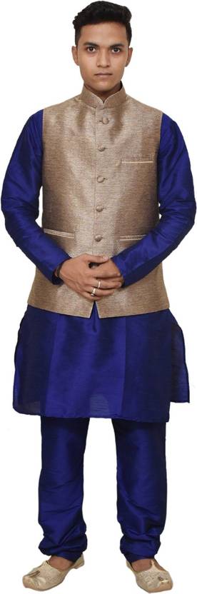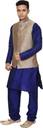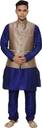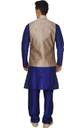 Men's Royal Blue Matching silk Kurta Churidhar With Gold Sparkle Color Waistcoat