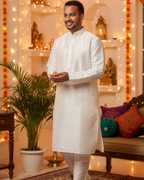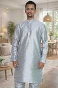 This amazing party/traditional wear Kurta has full-sleeves and button-down neckline that lends you the look of a debonair Indian men.