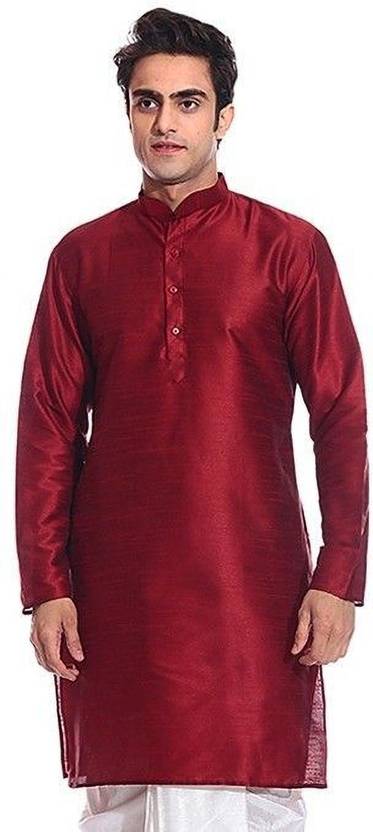 This amazing party/traditional wear Kurta has full-sleeves and button-down neckline that lends you the look of a debonair Indian men.