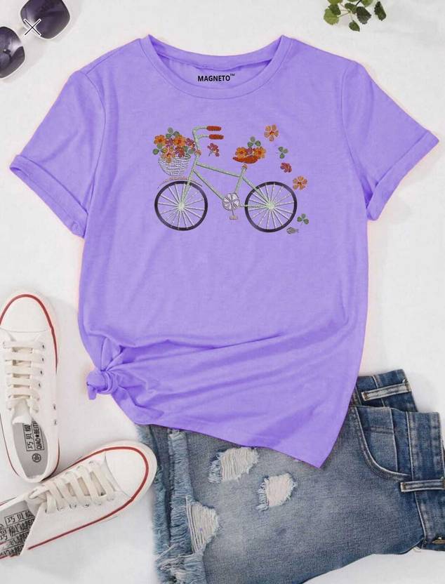 magento Women Printed Round Neck Pure Cotton Purple T-Shirt