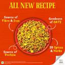 Ingredients | - Noodles:- Flour blend (Oat Flour (42.6%) & Wheat Flour (Atta)), Palm Oil, Wheat gluten, Iodized Salt, Thickners(508 & 412), Humectants(451(i) & 452 (i)) and Acidity Regulators (501(i) & 500 (i)). Masala Tastemaker:- Mixed Spices (25%) (Onion Powder, Coriander powder, Garlic Powder, Red chilli Powder, Turmeric powder, Dehydrated Kasuri methi leaves, Cumin powder, Aniseed powder, Red Chilli bits, Ginger Powder, Black Pepper powder, Fenugreek powder, Cumin, Capsicum extract, Compounded Asafoetida, Green Cardamom powder, Star anise Powder, Cinnamompowder clove powder, Nutmeg Powder, Bay Leaf, Black cardamom powder, Coriander extract and Cumin extract, Onion(17.2%), Dehydrated Vegetables (Carrot (7.5%) & Sweet Corn (7.3%), Sugar, Wheat Flour (atta), Iodized Salt, Thickener (508), Flavourful (635), Yeast extract powder, Palm oil, Starch, Acidity Regulator (330), Corn oil and Mineral.Allergens: Contains Oats and Wheat May Contains Milk and Soy.