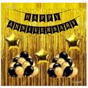 Magic Balloons Solid Happy Anniversary Black Banner Solid Gold Metallic Fringe Shiny Curtains with Latex and Star Foil Balloons Decoration Balloon Bouquet (Gold, Black, Pack of 36)